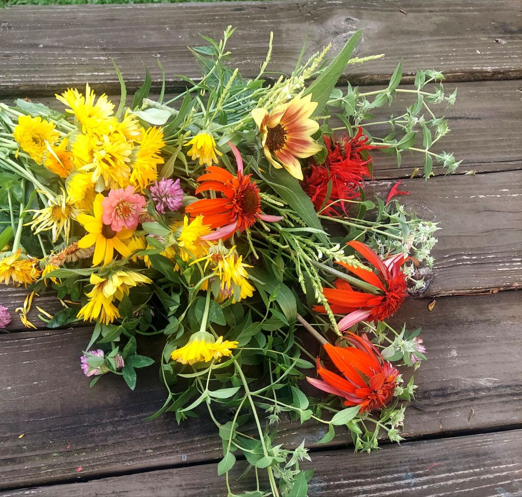 If you’re looking for easy, beautiful flowers, start with zinnias, sunflowers, bee balm, calendula, and mints. Zinnias will bloom like crazy if you keep cutting them. Sunflowers are best planted every couple weeks so they keep coming all summer. Bee balm and calendula will reseed themselves. Calendula is also great along borders because it stays shorter and helps keep pests away.